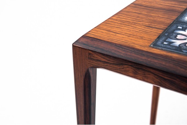 Couch-/Beistelltisch aus Teakholz mit Keramikplatte.